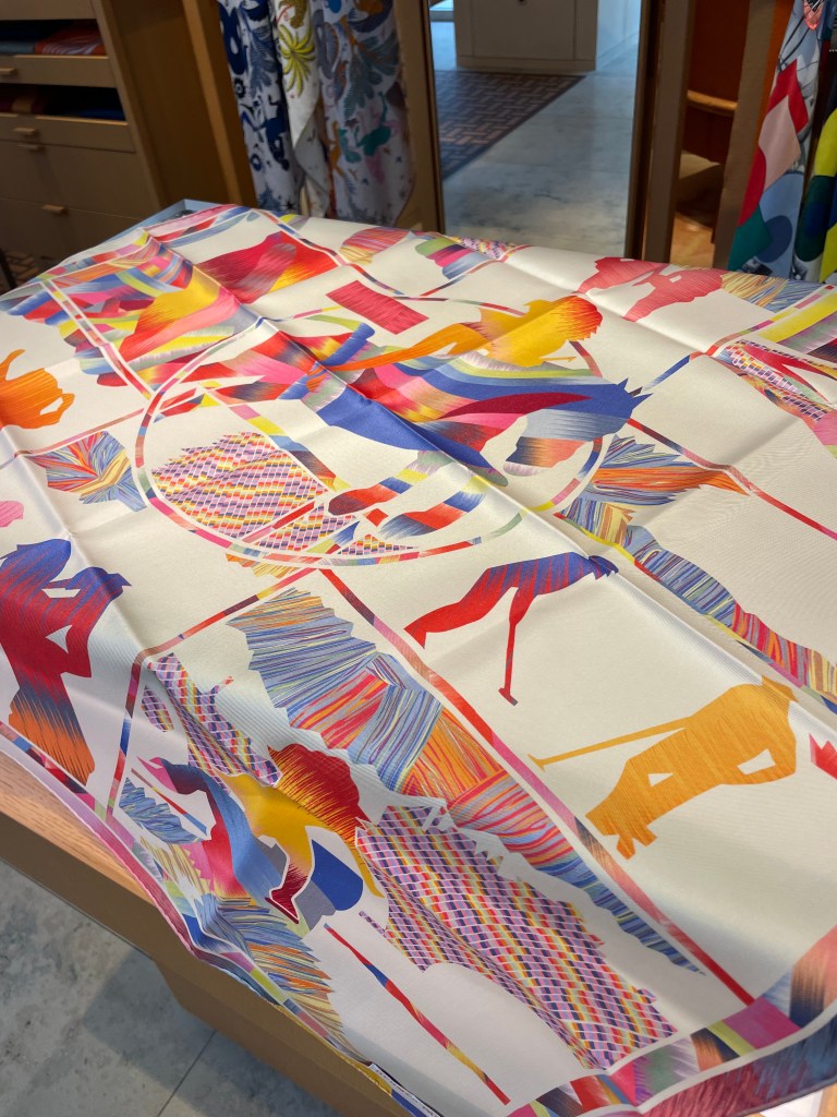 Was Hermès aber auch kann, sind Tücher. Tücher und Schals. Aus Seide. Aus Kaschmir. Mit handrollierten Kanten. In klein, mittel, mittel und groß.