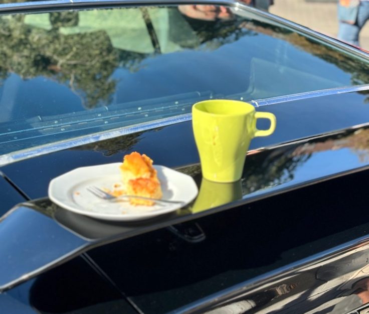 Ich durfte im Rolls-Royce Silver Shadow I von 1968 mitfahren. Michael Keines lenkte dieses wunderbare Auto gelassen, seine Andrea navigierte konzentriert und man merkte: sie hat Erfahrung mit Oldtimer-Rallyes. Es war schön, diesem Team zuzuschauen. Ich saß im Fond, winkte freundlich den Menschen am Straßenrand zu, und hatte das Gefühl, ein kleiner Teil einer gerade wunderbaren Geschichte zu sein. So fühlt sich Mitfahren an, wenn ein Auto mehr ist als Metall. Ein Picknick, stilvoll, versteht sich, wurde ebenfalls, am Rheinufer sitzend, abgehalten. Hach!