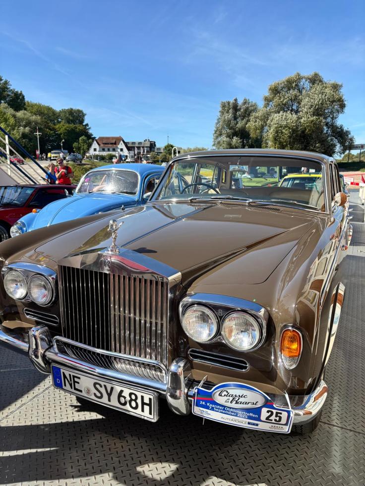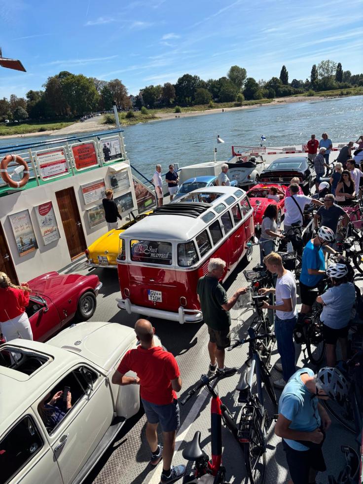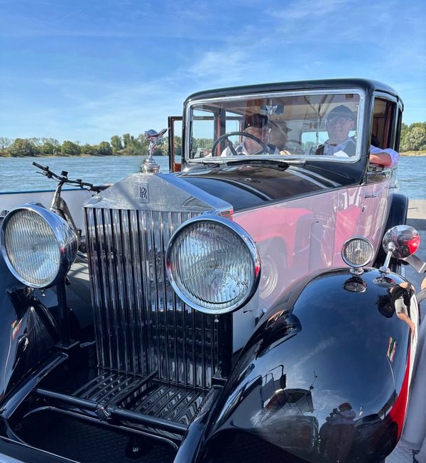 Die Rheinüberfahrt war ein Höhepunkt der Ruhe. Oldtimer neben Fahrrädern, Kinder, Spaziergänger, Menschen, die neugierig fragten, lächelten, winkten. Der Rolls glänzte in der Sonne, und plötzlich war es ganz still – nur Wasser, Wind und ein Gefühl von Verbundenheit. Die Strecke hätte hier enden können, und es wäre trotzdem ein schöner Tag gewesen.